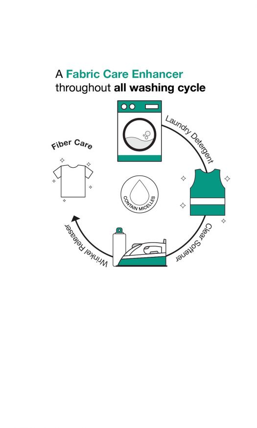 This innovative additive forms micelles in water, even with fabric softener, enhancing fabric care at every washing stage.
